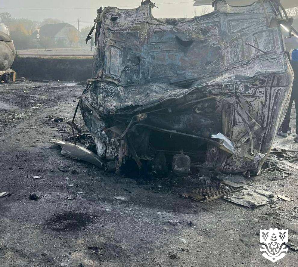 Informoval také, že v důsledku útoku bylo poškozeno pět nákladních automobilů na otevřeném parkovišti: čtyři z nich byly prázdné a pátý byl nákladní automobil převážející obilí a sóju.