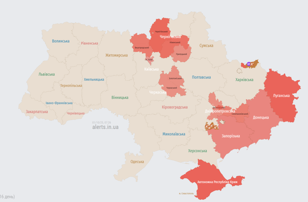 О 8:50 оголосили про відбій загрози по Києву та областях. Загроза залишалася лише для частини Черкаської та Кіровоградської області.