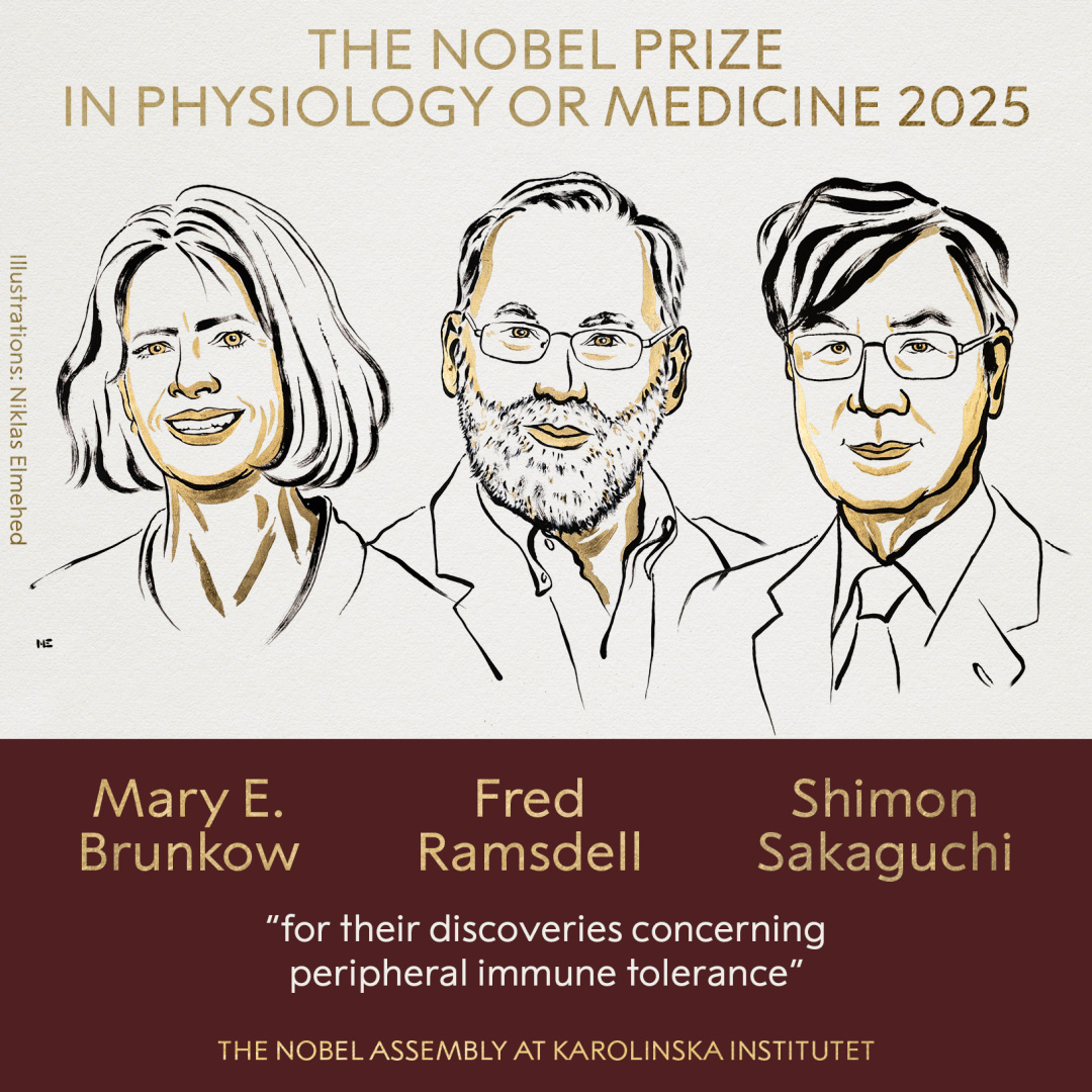 Лауреатами Нобелівської премії у галузі фізіології та медицини 2025 року стали американська науковиця Мері Е. Бранков, американський імунолог Фред Рамсделл та японський імунолог Шимон Сакагучі за «їхні відкриття щодо периферичної імунної толерантності».