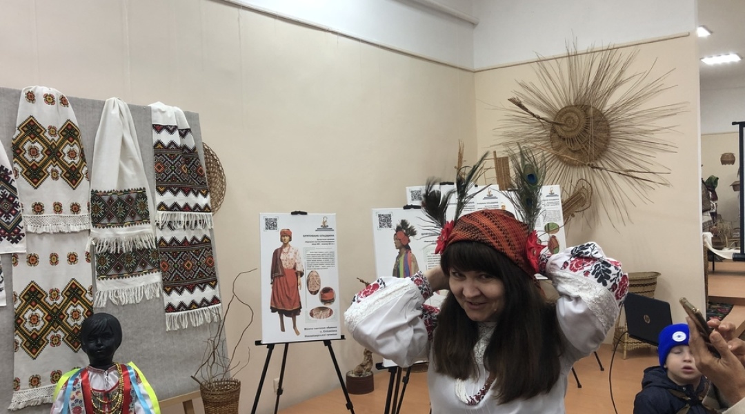 Також охочі мали змогу приміряти старовинний елемент одягу мешканців Луганщини - головний убір з "твєтками". Це згорнута учетверо по діагоналі хустка з тонкого набивного шовку, до якої додано червоні шовкові квіти з павичевими пір'їнами.