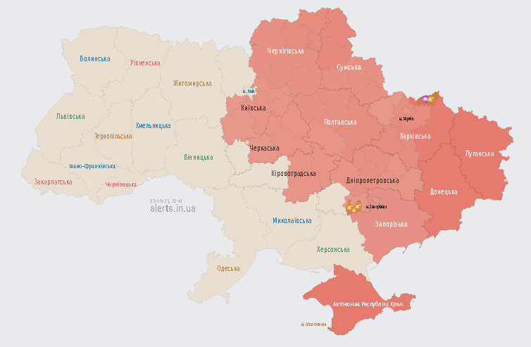 Про небезпеку в низці областей свідчить мапа повітряних тривог.