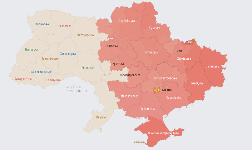 Про небезпеку в низці областей свідчить мапа повітряних тривог.