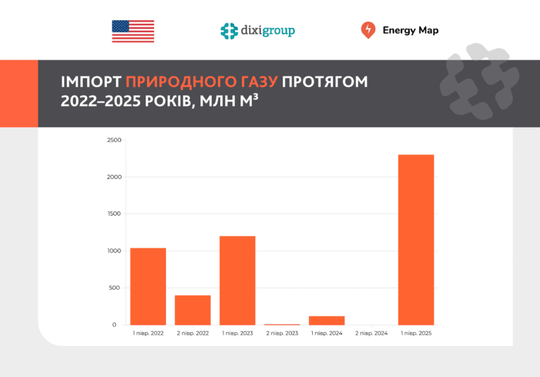"Імпорт природного газу в Україну за перше півріччя 2025 року зріс у 19,3 раза порівняно з аналогічним періодом 2024 року. За даними Energy Map, країна придбала 2,30 млрд куб. м газу на суму $1,17 млрд, тоді як роком раніше обсяг імпорту складав лише 0,12 млрд куб. м на $36,41 млн", - йдеться у повідомленні.