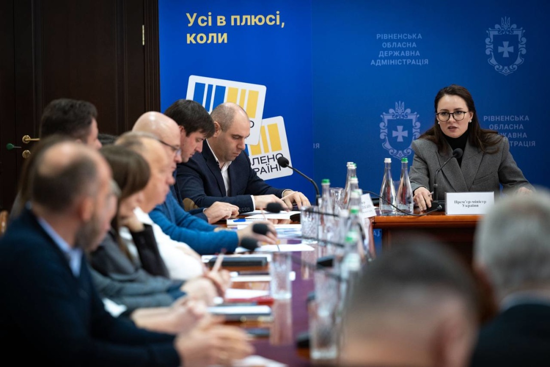 "Працюємо сьогодні на Рівненщині — в регіоні, який прийняв багато внутрішньо переміщених осіб і релоковані заводи. Разом з членами уряду заслухали доповідь голови ОВА Олександра Коваля про основні проблемні питання області, зустрілися з підприємцями, а також обговорили питання освіти в області", — розповіла вона.