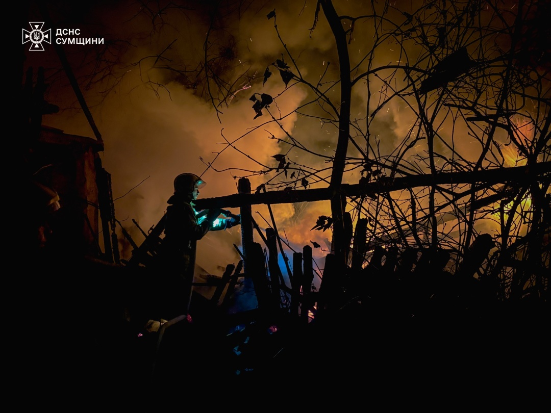 "Пізно ввечері 2 листопада ворог завдав ракетного удару по одному із сіл Боромлянської громади у Тростянецькому районі. Внаслідок атаки пошкоджень зазнали об’єкт інфраструктури та житлові будинки. В одному з приватних домоволодінь спалахнула масштабна пожежа. Фахівці ДСНС ліквідували загоряння", - йдеться у повідомленні.