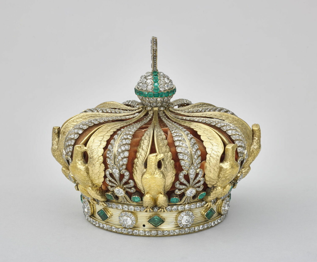 Золота корона, інкрустована 1354 діамантами та 56 смарагдами. Зараз їй бракує декількох невеликих діамантів та одного з восьми золотих орлів. Меценати вже запропонували свою допомогу в реставрації, також буде створено науковий комітет для контролю за цим процесом.