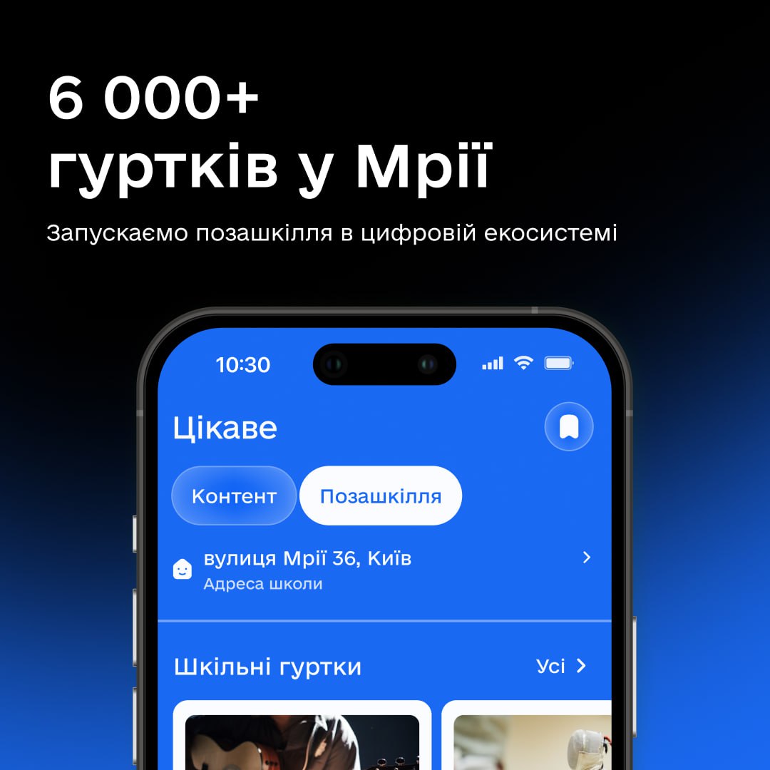 «Позашкілля вже у Мрії »… Тепер батьки можуть обирати позакласні активності для своєї дитини просто в мобільному застосунку. У «Мрії» вже є розділ гуртків та секцій», - йдеться в повідомленні.