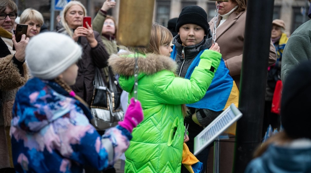 Стрічку на відкритті інсталяції розрізали діти та першими задзвонили в дзвони.