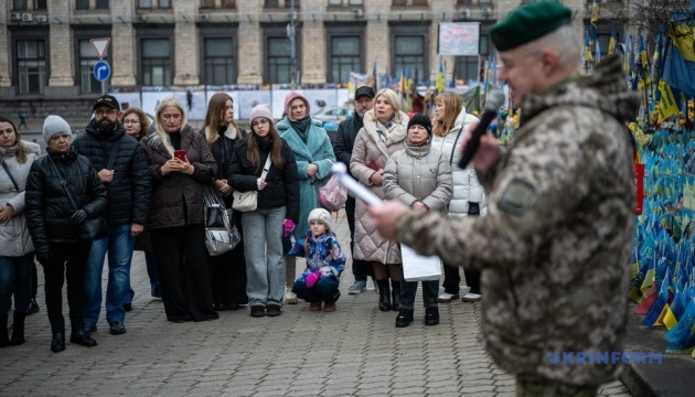 Під час виступів учасники заходу відзначили, що прийшли на Майдан, аби вшанувати пам'ять українських героїв, подякувати їм за відвагу та жертовність, висловити підтримку рідним та близьким тих, хто загинув, та хто сьогодні боронить незалежність України.