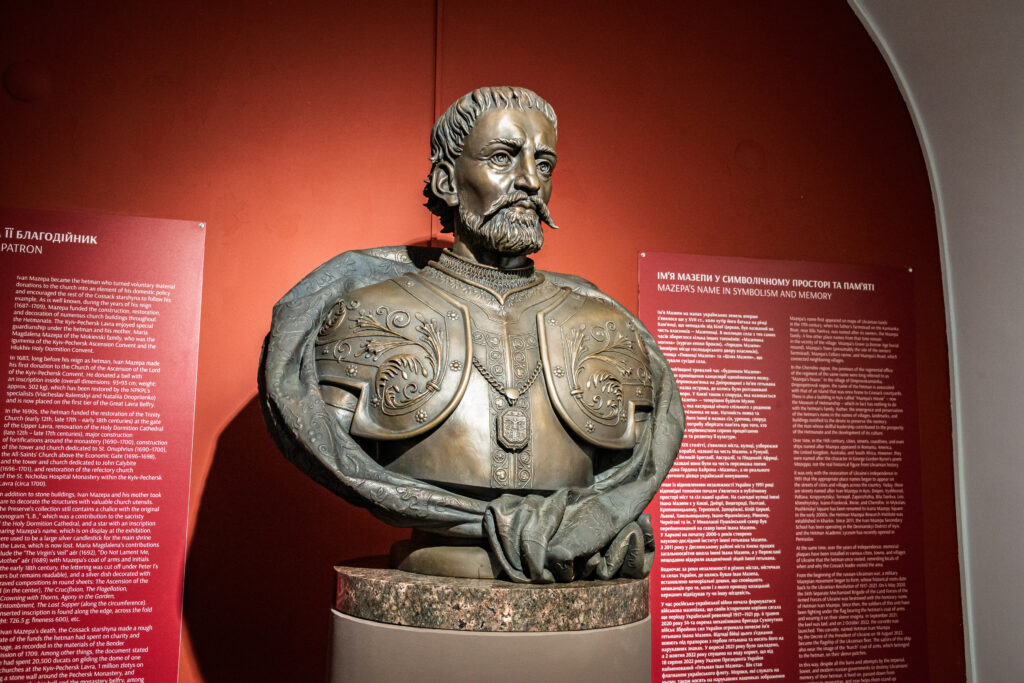 Скульптурне зображення Івана Мазепи можна побачити у першій залі виставки «Мазепа. Стратегія європейської України» у 4-му корпусі заповідника (Келіях соборних старців).