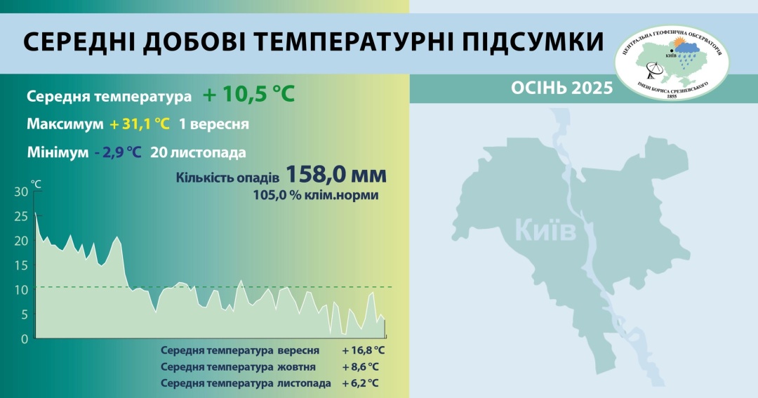 За даними метеорологів, осінь 2025 року стала шостою у рейтингу найтепліших у Києві з 1881 року.