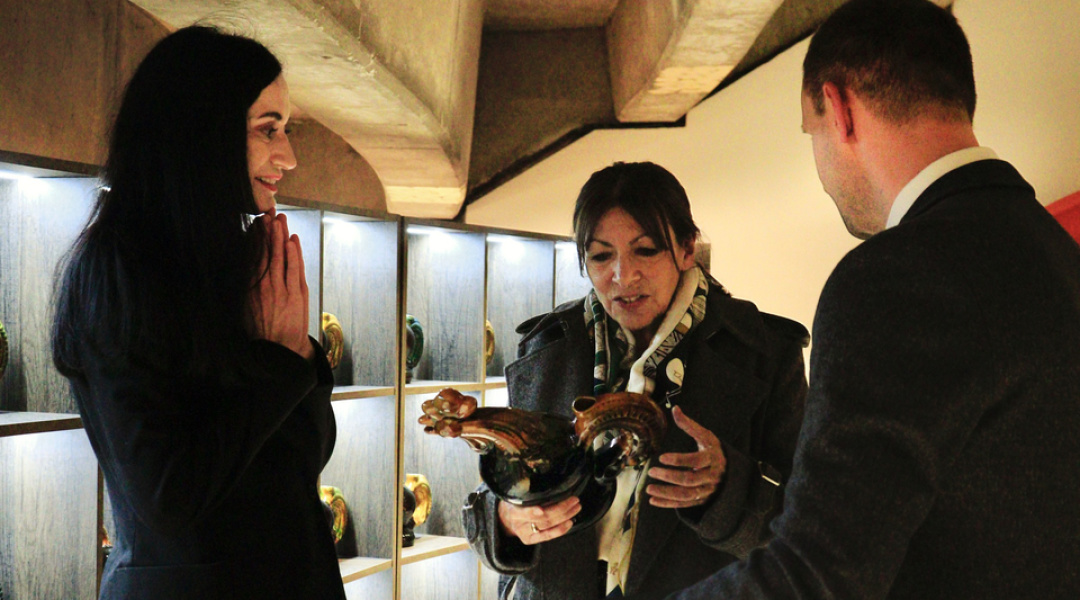 Керамічних птахів у подарунок від Благодійного фонду «Півник» отримали перша леді Франції Бріжит Макрон, мер Парижа Анн Ідальго, міністерка культури Рашида Даті та міністр закордонних справ Жан-Ноель Барро, передає кореспондент Укрінформу.