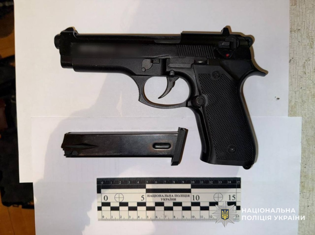 З квартири фігуранта вилучили пістолет із маркуванням Retay mod 92 cal. 9mm P.A.K., ще один пістолет у розібраному стані, а також рушницю з оптичним прицілом. Усю вилучену зброю досліджуватимуть експерти.