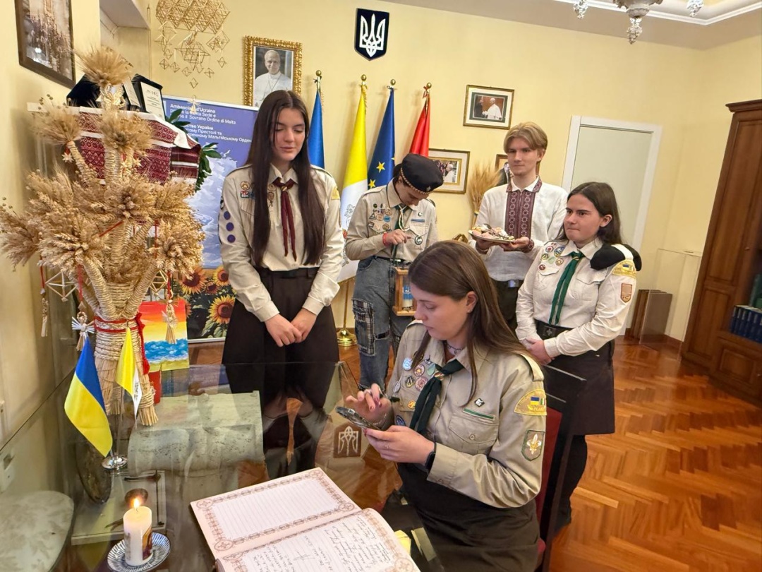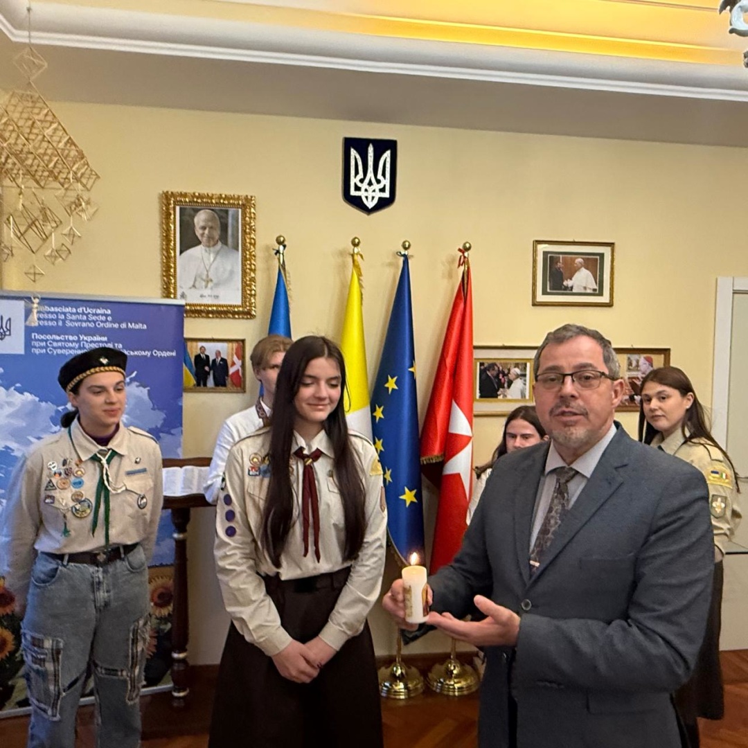 Посольство при Святому Престолі стало однією з перших установ у Римі, яка прийняла цей символ від юних пластунів: Марти Ковальської, Юлії Жук, Ганни Городецької, Жасмин Глови та Валентина Бориса.