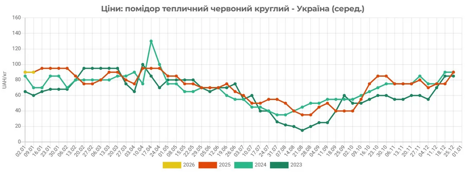 Нині ж тепличні помідори в Україні в середньому продаються на 10% дорожче, ніж у середині січня 2025 року. Учасники ринку вважають таку ситуацію тимчасовою та не виключають зниження цін уже найближчим часом після стабілізації постачання турецької продукції.