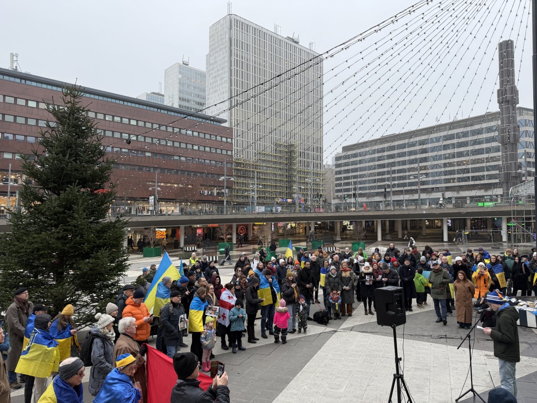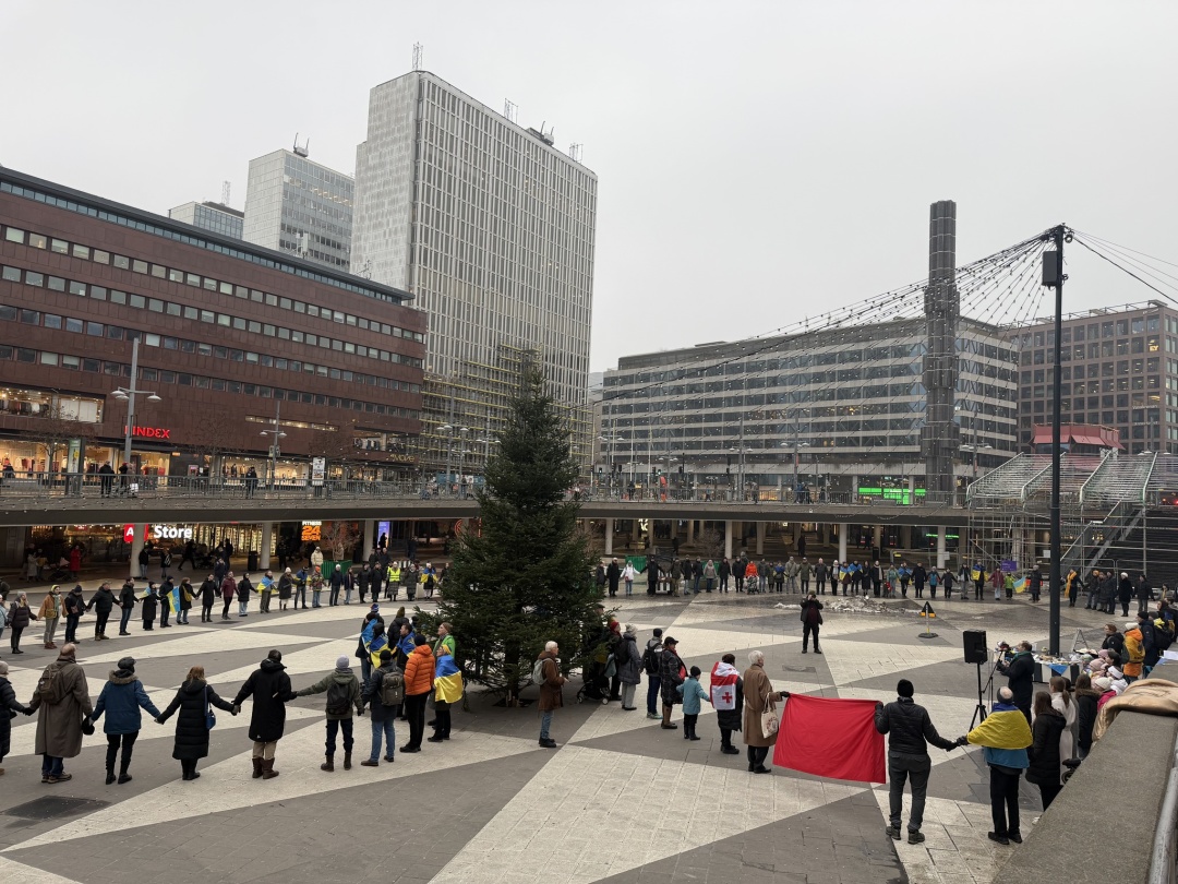 Захід відбувся 14 грудня на площі Сергельсторг, до 1390-го дня повномасштабної війни в Україні. Участь в акції зокрема взяли член парламенту Стефан Ольссон і віцеголова Nordic Ukraine Forum Альона Кашина.