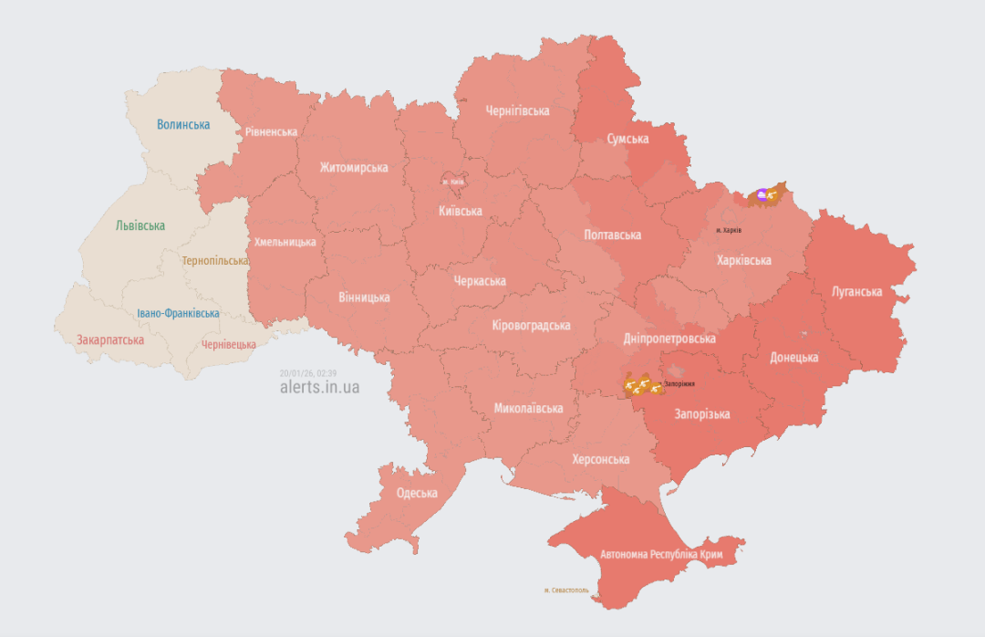 Проце повідомляє Укрінформ з посиланням на Київську МВА в Телеграмі та мапу повітряних тривог.