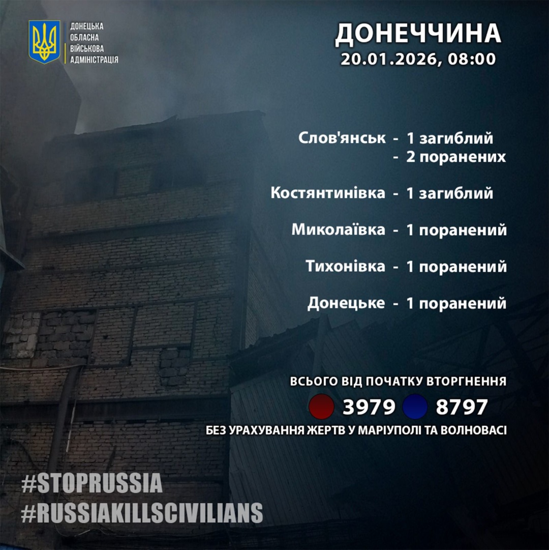 За його словами, росіяни вбили одну людину у Слов'янську та одну людину в Костянтинівці. Ще п’ятеро людей в області за добу дістали поранення.