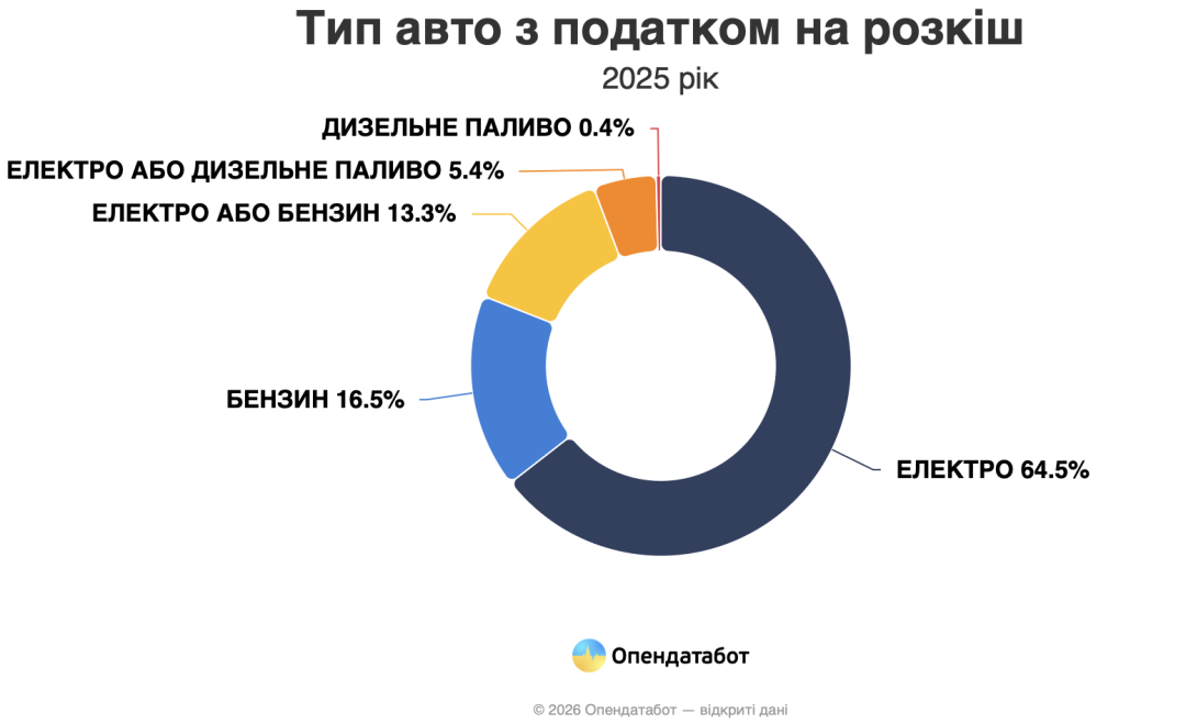 У преміум-сегменті господарюють електрокари, які займають частку у 65%. Ще 18% — гібриди з можливістю використання електрики разом із бензином або дизелем. А от чисто бензинові авто, лідери загального імпорту, опинились у хвості переліку із 17%. На дизель припадають лише символічні 0,4%.