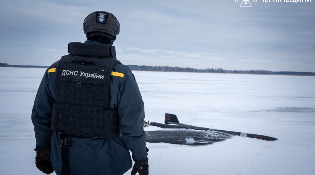 Операцію з вилучення та знищення вибухонебезпечного предмета проводили у складних умовах: дрон упав на значній відстані від берега, а нестійкий льодовий покрив створював додаткову загрозу для особового складу, унеможливлюючи безпечне пересування пішки.