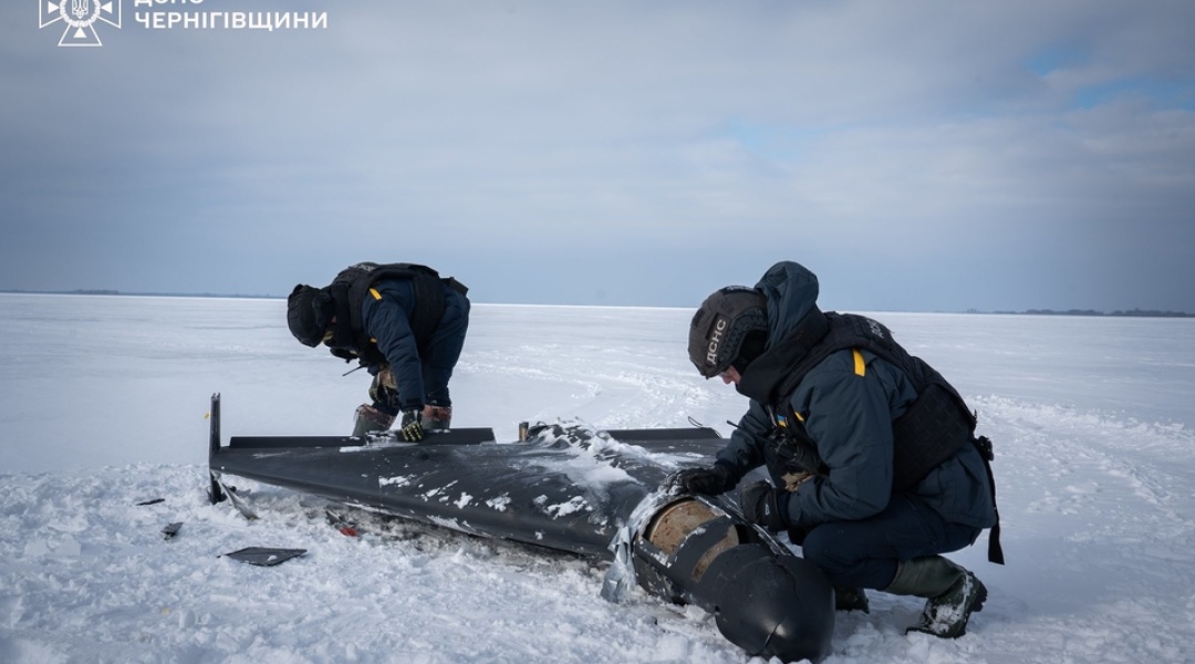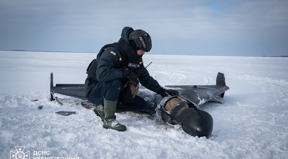Завдання доручили групі рятувальних робіт. До місця виявлення ворожого БПЛА піротехніків доправили за допомогою спеціального снігоболотохода «Богун».