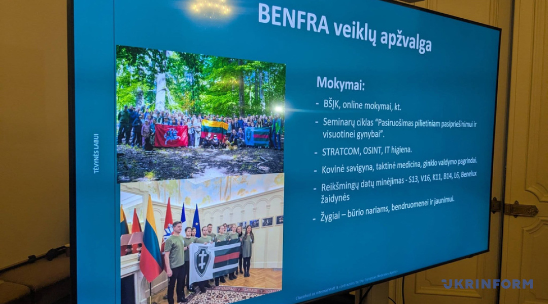 Керівниця підрозділу Вілма Радвілайте в коментарі Укрінформу зазначила, що Бенфра займається збиранням коштів на гуманітарну допомогу і 3D друком комплектуючих для дронів у взаємодії з ініціативами Wings for Europe та Wild Bees.