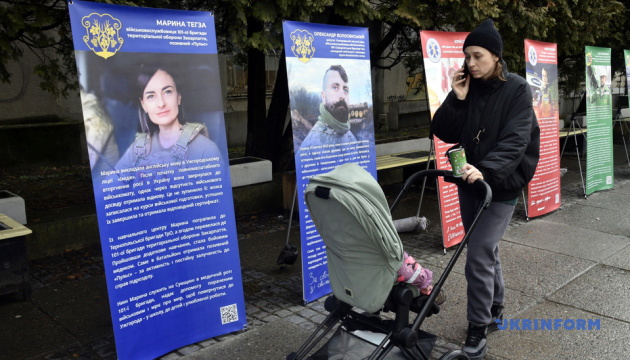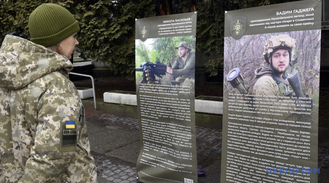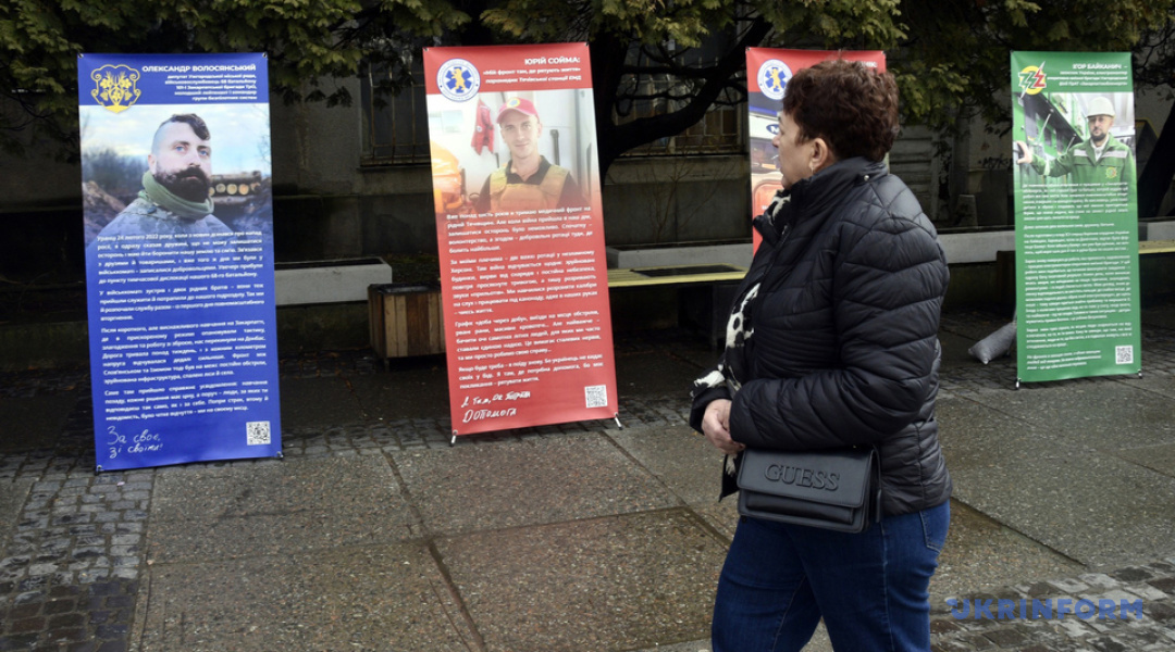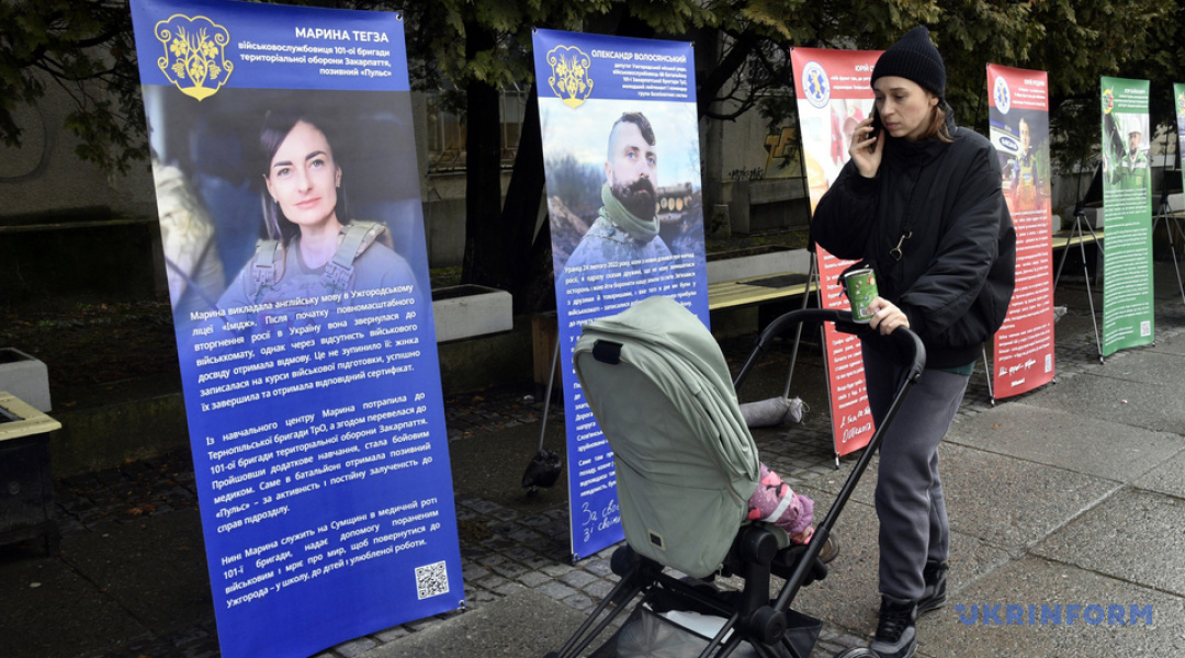 "Серед героїв виставки, яку спочатку розгорнули на площі Поштовій, - депутат Ужгородської міської ради Олександр Волосянський, який з перших днів повномасштабної війни добровільно став на захист України і продовжує службу донині. Поруч - історія вчительки англійської мови Ужгородського ліцею №19 Марини Тегзи. Не маючи військового досвіду, вона добровільно пішла на фронт і сьогодні рятує життя як медикиня на Сумському напрямку", - йдеться у повідомленні.