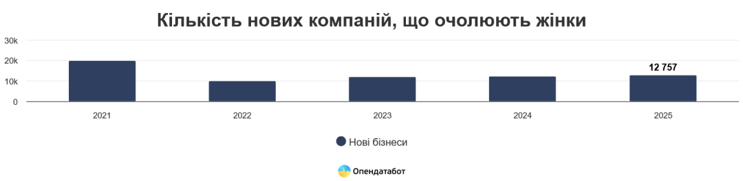 Наразі на жінок-директорок припадає 34% від загальної кількості новостворених компаній. Це майже стільки ж, як і до початку повномасштабної російсько-української війни.